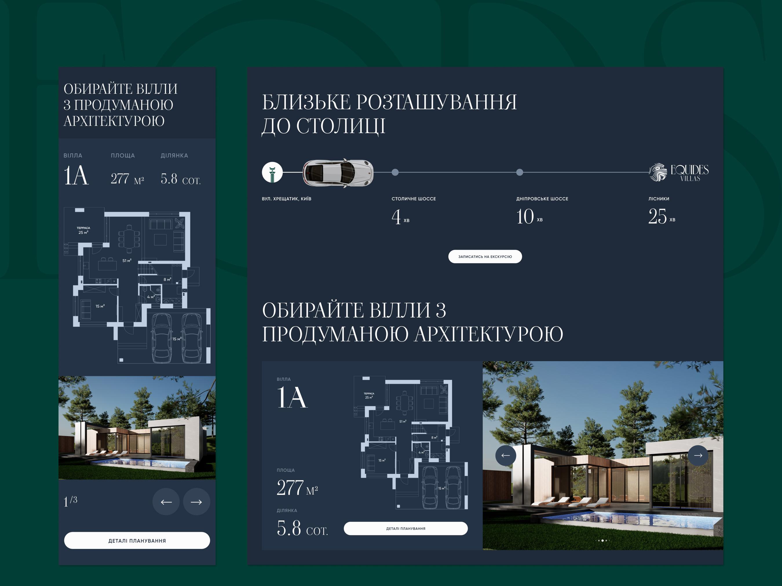 Версія 2.0 сайту Equides Villas стала повноцінним презентаційним інструментом, який дозволяє потенційним покупцям зануритися в атмосферу комплексу ще до особистого візиту. Детальна інформація про кожну віллу, якісні візуалізації інфраструктури та продумана навігація — все це працює на формування правильних очікувань та прискорення прийняття рішення.